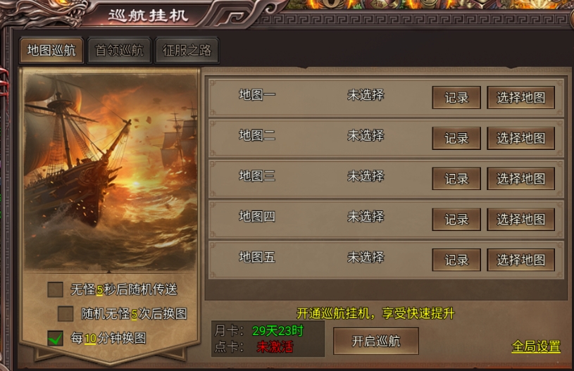 征服之路模式对于完成主线任务大陆非常好用,只需要点击开启巡航就不用自己动手切换地图打怪完成任务了。