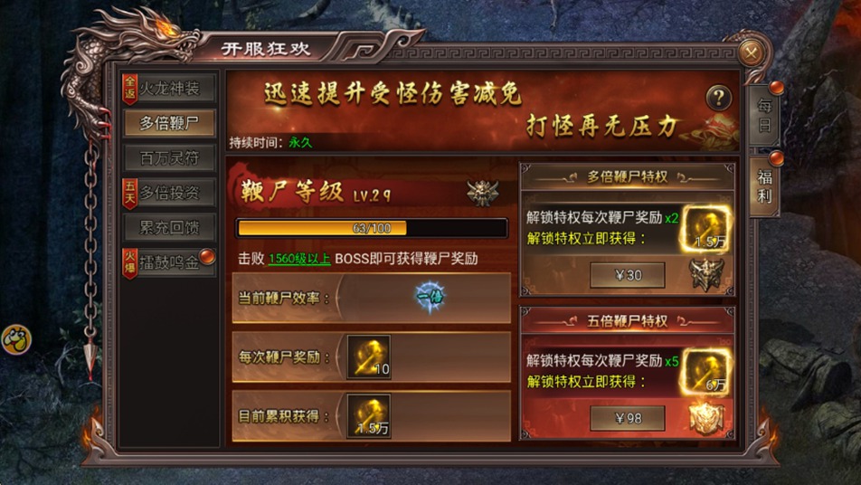 98元激活「五倍鞭尸特权」→ 鞭尸奖励*5=普通玩家5倍效率!