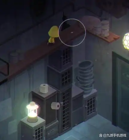 下面一个是在下章有一排杂物和过道这里,这里咱们需要一路走到底,旁边的几个门我们都不要进入。在最后位置的油灯的旁边可以看到一个很不明显的缝隙,然后我们进入,这里就是隐藏房间,我们直接爬上架子和箱子进行互动。