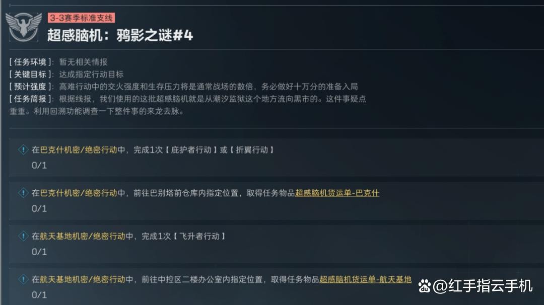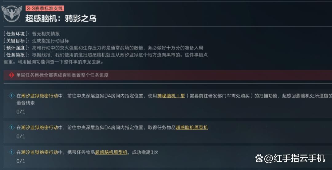 另外,鸦影之乌这个任务需要监狱撤离,并且鸦影之谜的前面几个任务也需要去监狱调查,大家自行考虑哈。
