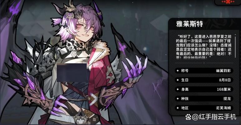 5.雅莱斯特:6星火系输出角色;普攻叠融皮、秘脆皮。伤害上限高,但对闪避时机和技能衔接要求高,适合喜欢钻研连招、追求操作快感的玩家。